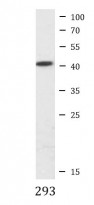 Western blot: 293 cell lysate stained with ARG66860 anti-GSK3 beta phospho (Ser9) antibody at 1:1000 dilution.