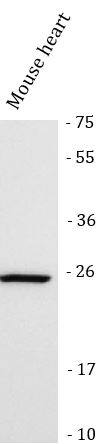 Western blot: Mouse heart stained with ARG45893 anti-GSTK1 antibody at 0.5 μg/ml dilution.