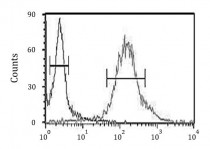 Flow Cytometry: HeLa cells stained with ARG55722 anti-GTSE1 antibody (right histogram) or without primary antibody as control (left histogram), followed by incubation with FITC labelled secondary antibody.