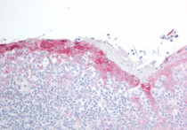 Immunohistochemistry: Paraffin-embedded Human tonsil tissue. Antigen Retrieval: Steam tissue section in Citrate buffer (pH 6.0). The tissue section was stained with ARG63276 anti-H11 / Hsp22 antibody at 10 µg/ml dilution followed by AP-staining.