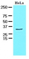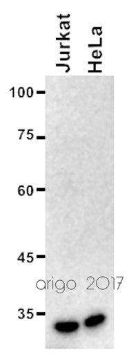 Western blot: 30 µg of HeLa cell lysate stained with ARG57096 anti-HAX1 antibody [3C5] at 1:1000.