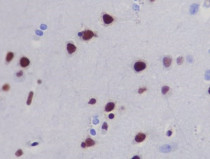Immunohistochemistry: Paraffin-embedded Human brain stained with ARG59238 anti-HDAC9 antibody.