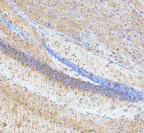 Immunohistochemistry: Mouse brain stained with ARG44500 anti-HDHD5 antibody at 2 μg/mL dilution.
