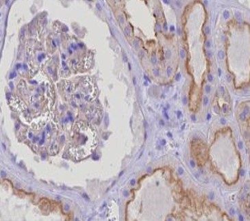 Immunohistochemistry: Human kidney stained with ARG44843 anti-HIP1R antibody at 5 µg/mL dilution.