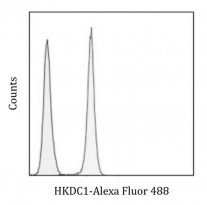 Flow Cytometry: LOVO cells stained with ARG43404 anti-HKDC1 antibody at 1:100 dilution (right histogram) or without primary antibody as control (left histogram), followed by incubation with Alexa Fluor® 488 labelled secondary antibody.