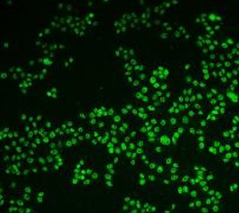 Immunofluorescence: MCF-7 stained with ARG45750 anti-HNRNPH3 antibody at 5 μg/ml dilution.