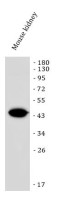 Western blot: Mouse kidney stained with ARG45184 anti-HOXD11 antibody at 0.5 μg/ml dilution.