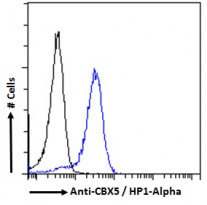 Flow Cytometry: Paraformaldehyde-fixed HeLa cells permeabilized with 0.5% Triton. Cells were stained with ARG63877 anti-HP1 alpha antibody (blue line) at 10 µg/ml dilution for 1 hour, followed by incubation with Alexa FluorR 488 labelled secondary antibody. IgG control: Unimmunized goat IgG (black line).