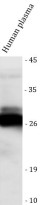 Western blot: Human plasma stained with ARG67292 anti-Hemoglobin antibody [23D].