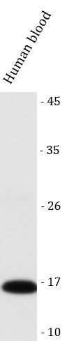 Western blot: Human blood stained with ARG67292 anti-Hemoglobin antibody [23D].
