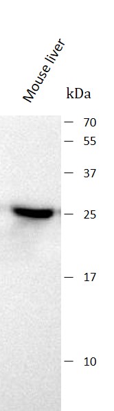 Western blot: Mouse liver stained with ARG44437 anti-IDI1 antibody at 0.5 μg/mL dilution.