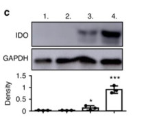 背景介绍 | This gene encodes indoleamine 2,3-dioxygenase (IDO) - a heme enzyme that catalyzes the first and rate-limiting step in tryptophan catabolism to N-formyl-kynurenine. This enzyme acts on multiple tryptophan substrates including D-tryptophan, L-tryptophan, 5-hydroxy-tryptophan, tryptamine, and serotonin. This enzyme is thought to play a role in a variety of pathophysiological processes such as antimicrobial and antitumor defense, neuropathology, immunoregulation, and antioxidant activity. Through its expression in dendritic cells, monocytes, and macrophages this enzyme modulates T-cell behavior by its peri-cellular catabolization of the essential amino acid tryptophan.[provided by RefSeq, Feb 2011] |