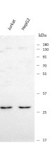Western blot: Jurkat and HepG2 stained with ARG44439 anti-IFFO1 antibody at 0.5 μg/mL dilution.