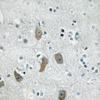 Immunohistochemistry: Formalin-fixed and paraffin-embedded Human brain tissue section. Antigen Retrieval: Heat mediation was performed in Sodium citrate buffer (pH 6.0). The section was stained with ARG66715 anti-IFIT1 antibody at room temperature. DAB was used as the chromogen. The section was then counterstained with haematoxylin and mounted with DPX.