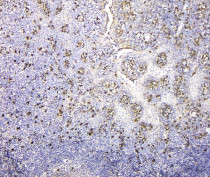 Immunohistochemistry: Paraffin-embedded Mouse spleen tissue. Antigen Retrieval: Heat mediation was performed in Citrate buffer (pH 6.0) for 20 min. The tissue section was blocked with 10% goat serum. The tissue section was then stained with ARG42961 anti-IGLL1 / Lambda 5 antibody at 1 µg/ml dilution, overnight at 4°C.