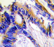 Immunohistochemistry: Human colon carcinoma stained with ARG67109 anti-ILKAP antibody.