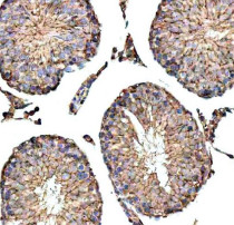 Immunohistochemistry: Mouse testis stained with ARG45900 anti-IQCM antibody at 2 μg/ml dilution.