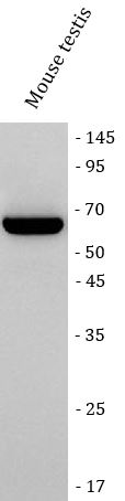 Western blot: Mouse testis stained with ARG45900 anti-IQCM antibody at 0.5 μg/ml dilution.