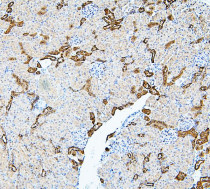 Immunohistochemistry: Paraffin-embedded Human liver cancer tissue. Antigen Retrieval: Heat mediation was performed in Citrate buffer (pH 6.0) for 20 min. The tissue section was blocked with 10% goat serum. The tissue section was then stained with ARG43268 anti-IQGAP1 antibody at 1 µg/ml dilution, overnight at 4°C.