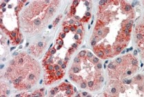 Immunohistochemistry: paraffin embedded Human Kidney. (Steamed antigen retrieval with citrate buffer pH 6) stained with ARG65011 anti-IREB2 / IRP2 antibody at 3.8 µg/ml dilution followed by AP-staining.