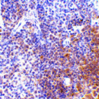 Immunohistochemistry: Mouse spleen tissue stained with ARG57515 anti-IRF7 antibody at 5 µg/ml dilution.