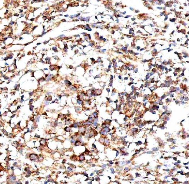 Immunohistochemistry: Human ovarian cancer stained with ARG45782 anti-IVNS1ABP antibody at 2 μg/ml dilution.