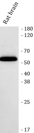 Western blot: Rat brain stained with ARG45901 anti-KCNA6 antibody at 0.5 μg/ml dilution.