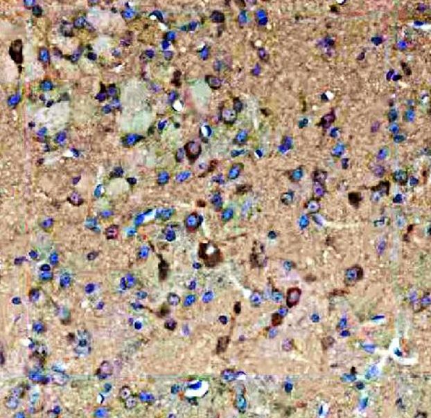 Immunohistochemistry: Mouse brain stained with ARG45901 anti-KCNA6 antibody at 2 μg/ml dilution.