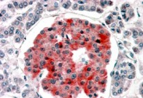 Immunohistochemistry: paraffin-embedded Human Pancreas (Steamed antigen retrieval with citrate buffer pH 6) stained with ARG64391 anti-KCNJ11 / Kir6.2 antibody at 3.8 µg/ml dilution, followed by AP-staining.