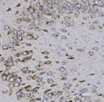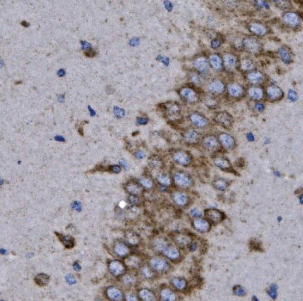 Immunohistochemistry: Mouse brain stained with ARG45711 anti-KCNQ5 antibody at 2 μg/ml dilution.