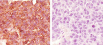 Immunohistochemistry: Paraffin-embedded tumors derived from Huh-7 cells stained with ARG66361 anti-KHK (isoform C) antibody (left), or the same antibody pre-incubated with KHK-C aa. 72-115 peptide (right).