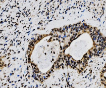 Immunohistochemistry: Human gallbladder adenocarcinoma stained with ARG45650 anti-KHSRP antibody at 2 μg/ml dilution.