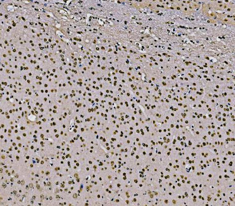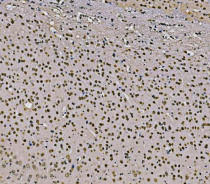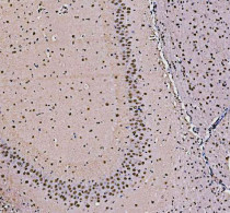 Immunohistochemistry: Mouse brain stained with ARG45650 anti-KHSRP antibody at 2 μg/ml dilution.