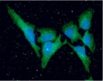 Immunoflorescense: HeLa cell line stained with ARG56909 anti-KIR2DL3 antibody [190IIC311] at 1:100 (Green).