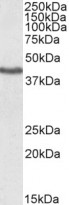 Western blot: 35 µg of Human heart lysate (in RIPA buffer) stained with ARG63587 anti-KLF3 / BKLF antibody at 1 µg/ml dilution and incubated at RT for 1 hour.