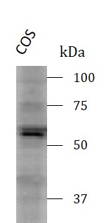 Western blot: COS stained with ARG24151 anti-Kir2.1 / KCNJ2 antibody [S112] at 1:1000 dilution.