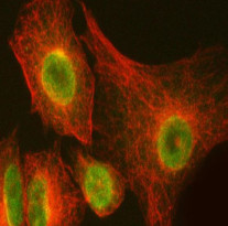 Immunofluorescence: A549 stained with ARG45465 anti-LARG antibody at 5 μg/ml dilution.