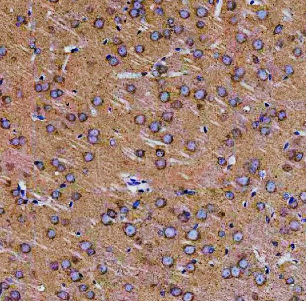 Immunohistochemistry: Rat brain stained with ARG45465 anti-LARG antibody at 2 μg/ml dilution.