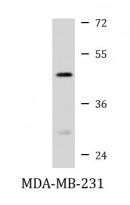 Western blot: 35 µg of MDA-MB-231 cell lysate stained with ARG54850 anti-LPAR2 / EDG4 antibody (N-term) at 1:1000 dilution.