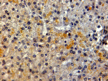Immunohistochemistry: Paraffin-embedded Human liver tissue. Antigen Retrieval: Steam tissue section in Citrate buffer (pH 6.0). The tissue section was stained with ARG63799 anti-LRP5 antibody at 2 µg/ml dilution followed by HRP-staining.