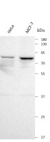 Western blot: HeLa and MCF-7 stained with ARG44429 anti-LSG1 antibody at 0.5 μg/mL dilution.