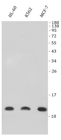 Western blot: HL-60, K562, and MCF-7 stained with ARG45202 anti-LSM5 antibody at 0.5 μg/ml dilution.