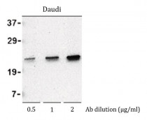 Western blot: Daudi cell lysate stained with ARG41236 anti-LY86 / MD1 antibody at 0.5, 1 and 2 µg/ml dilution.