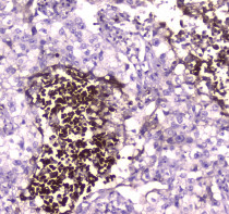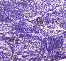 Immunohistochemistry: Paraffin-embedded Mouse spleen tissue. Antigen Retrieval: Heat mediation was performed in Citrate buffer (pH 6.0, epitope retrieval solution) for 20 min. The tissue section was blocked with 10% goat serum. The tissue section was then stained with ARG41413 anti-Lactoferrin antibody at 2 µg/ml dilution, overnight at 4°C.