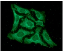 Immunoflorescense: HeLa cell line stained with ARG56966 anti-Laforin antibody [k2A3] at 1:100 (Green).