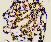 Immunohistochemistry: Paraffin-embedded Human breast cancer tissue stained with ARG42015 anti-Lamin A + C antibody at 1:200 dilution.