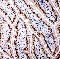 Immunohistochemistry: Rat Intestine stained with ARG43495 anti-Lamin B2 antibody at 1 μg/ml dilution.