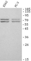 Western blot: K562 and PC-3 stained with ARG43495 anti-Lamin B2 antibody at 0.5 μg/ml dilution.