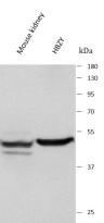 Western blot: Mouse kidney and HBZY stained with ARG44478 anti-MANSC4 antibody at 0.5 μg/mL dilution.