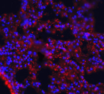 Immunohistochemistry: Mouse lung stained with ARG44021 anti-MFSD2A antibody at 2.5 μg/ml dilution.